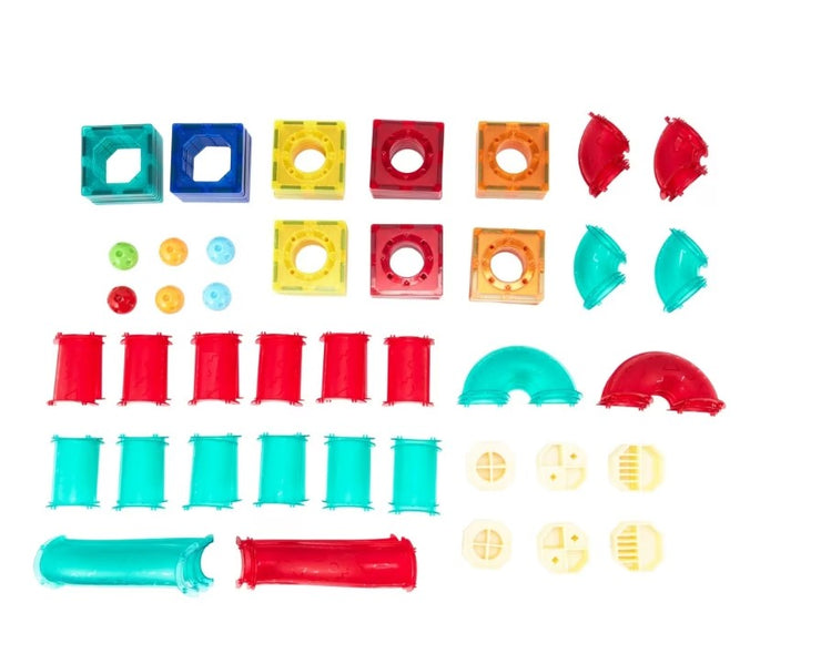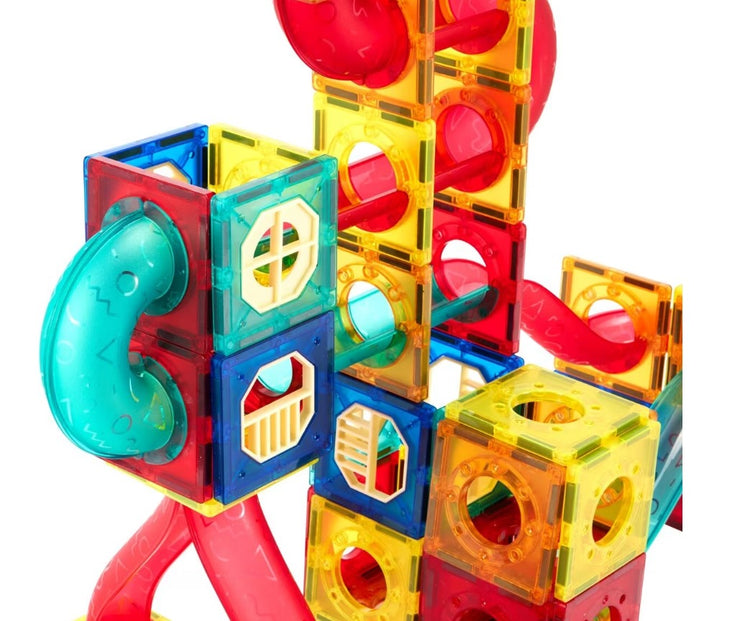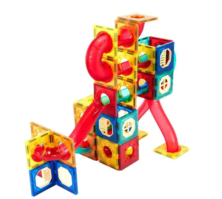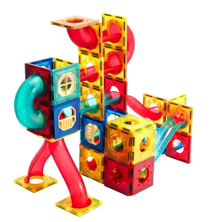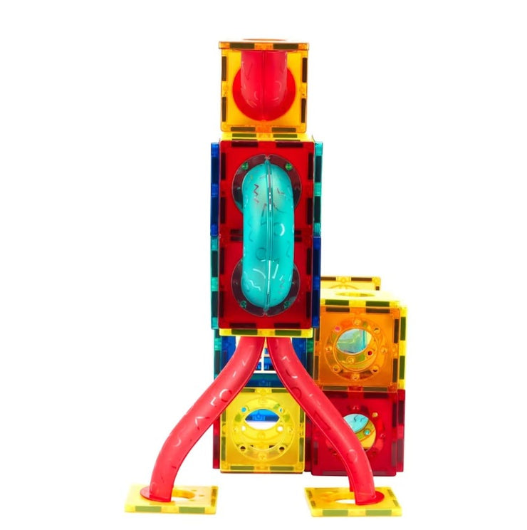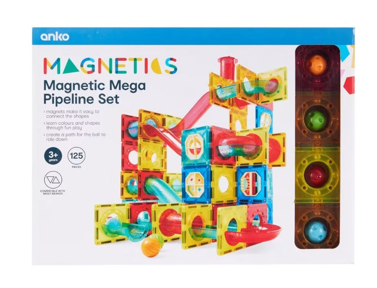 Kids can have fun and learn about different colours and shapes with this magnetic pipeline tiles set.