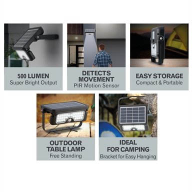 Arlec Integrated 5W LED Solar Powered Sensor Floodlight features a quality plastic body and durable aluminium mounting bracket. It can be mounted as a wall light. It is portable, free-standing and can serve as an outdoor table lamp. The bracket is easy to hang which makes this solar floodlight ideal for camping. The two different night modes give users the choices to dim the brightness with movement detection or stay on for the night.