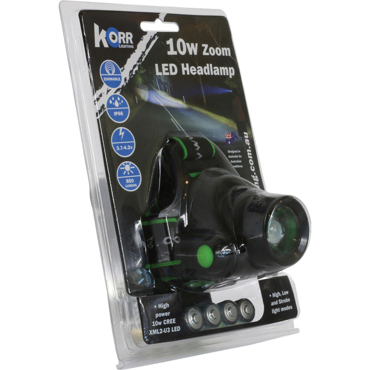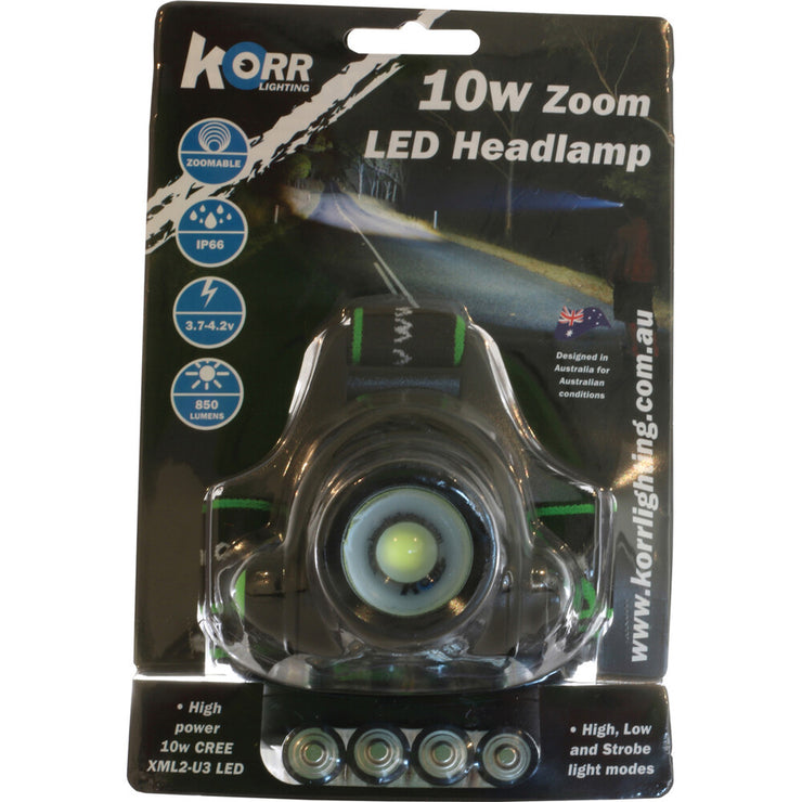 Light up the night with the Korr Cree LED Zoom 10W Headlamp. It gives out a market-leading 850 lumens of light and has a beam distance of 150m for incredible illumination. It has 3 light modes for versatility - High, low and strobe. It’s tough as anything, while staying lightweight and comfortable to wear. It lasts 4-10 hours, and it’s waterproof for durability in the great outdoors. One of the best headlamps on the market.
