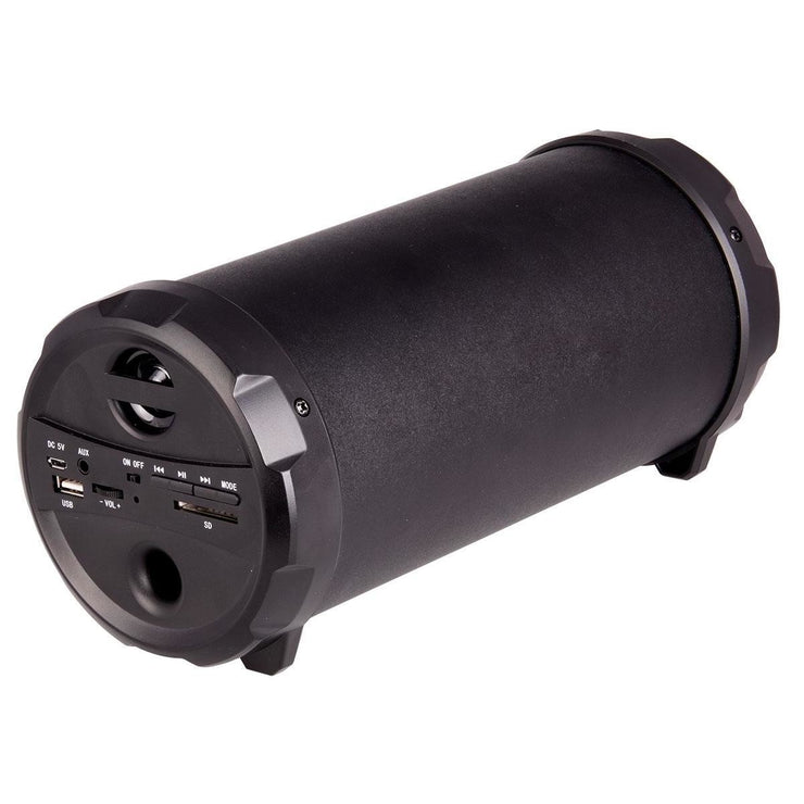 The Portable Wireless Cylinder Speaker works with smartphones, tablets and devices with built-in Bluetooth connectivity. This allows you to stream music on the go or you can plug and play your USB drive and SD Card to listen to your music. You can also directly connect using the 3.5mm audio jck. This speaker comes with a shoulder strap to allow for easy carriage. It is suitable for in the home or outside at BBQ's, picnics or camping trips.