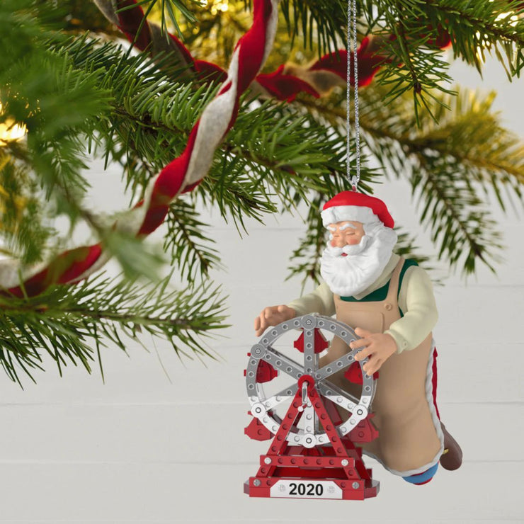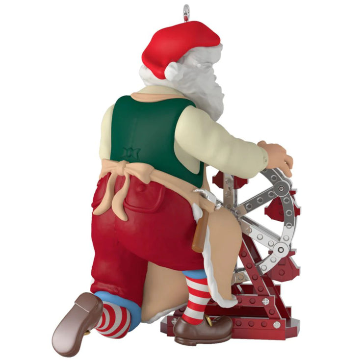 This year, Toymaker Santa has used his skills to build a fun Ferris wheel toy! This playful Christmas tree ornament features the jolly old man inspecting the wheel to make sure it works properly. Displaying it is sure to build plenty of anticipation for the fun of Christmas morning!