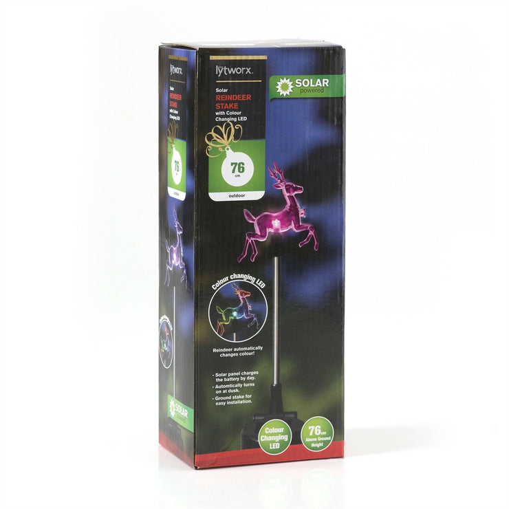 Lytworx 76cm Colour Changing LED Reindeer Festive/Auto Sensor/Solar Stake Light