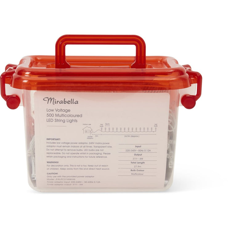 The Mirabella Christmas Low Voltage Multi-Colour 500 LED String Lights decorate your home this festive season with the Mirabella Christmas Low Voltage 500 LED String Lights. Whether you use this set indoors or out, it will shine bright and is sure to set the ambience of your decorated space.