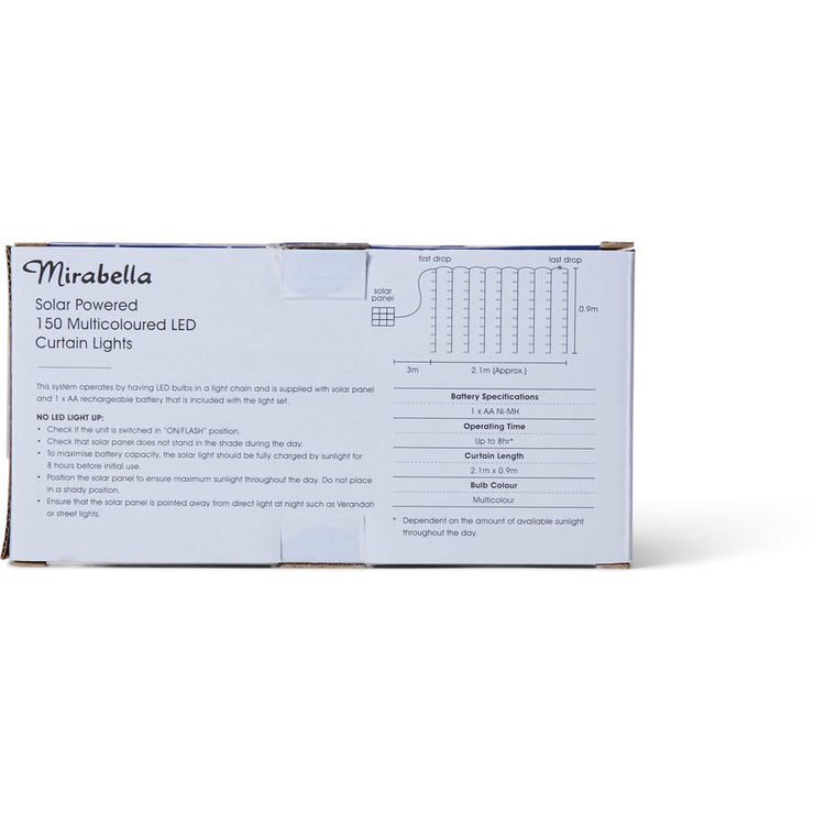 The Mirabella Christmas Solar Powered 150 LED Curtain Lights - Multi-Colour bring some Christmas sparkle to your yard this holiday season with the Mirabella Christmas Solar Powered 150 LED Curtain Lights. This outdoor set features a solar powered design with steady and flashing functions to spread joy through your neighbourhood.