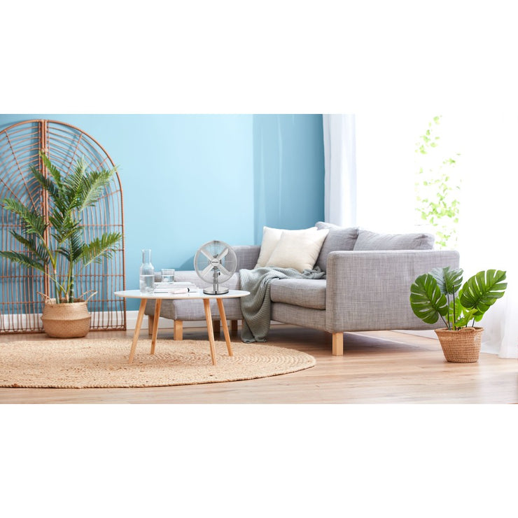 Our Sleek and modern fans are designed to compliment your home decor. With oscillating function, 3 speed control and head tilting, the 4 piece metal blades create a high velocity air flow cooling your space quickly.