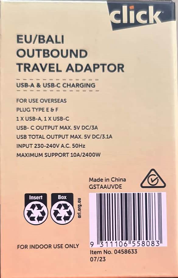 Stay connected while traveling with the EU/Bali Outbound Adaptor. This compact and versatile adaptor is your essential companion for overseas adventures. With support for plug types E and Fit ensures compatibility in European and Balinese outlets. Note: this adaptor is not a voltage converterlf your appliance does not match local voltage requirements, you must use a transformer.