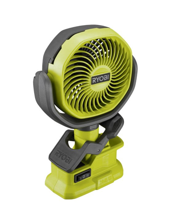 - Kit includes: RYOBI 18V ONE+ Compact Fan, 2.0Ah Lithium Battery, ONE+ Charger