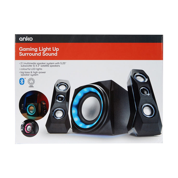 - 2.1 multimedia speaker system with 5.25-inch subwoofer and 4 x 2-inch satellite speakers
