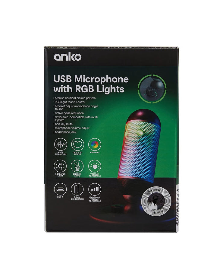 This RGB light microphone features active noise reduction - perfect for podcasting, gaming, live streaming and more.