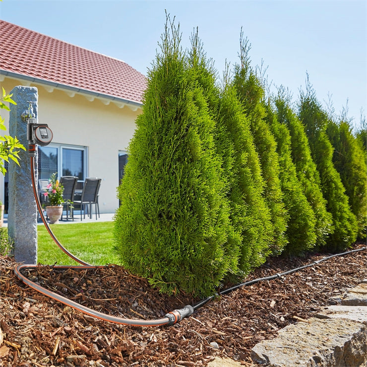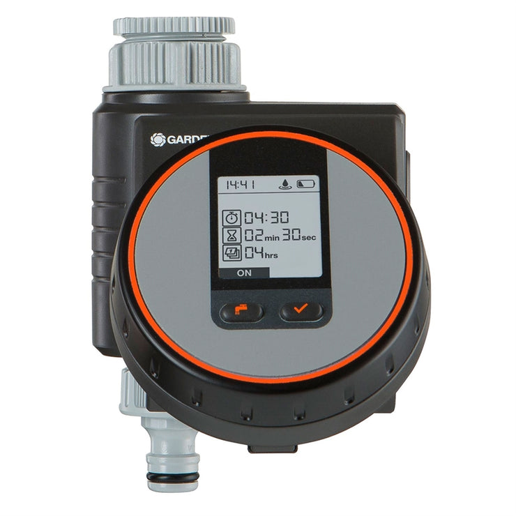 GARDENA Flex Water Computer connects to your tap and controls the irrigation of your garden automatically with ease allowing you to pursuit other activities. Programming is uncomplicated thanks to the step-by-step menu, simple controls and easy-to-read energy saving LCD display.