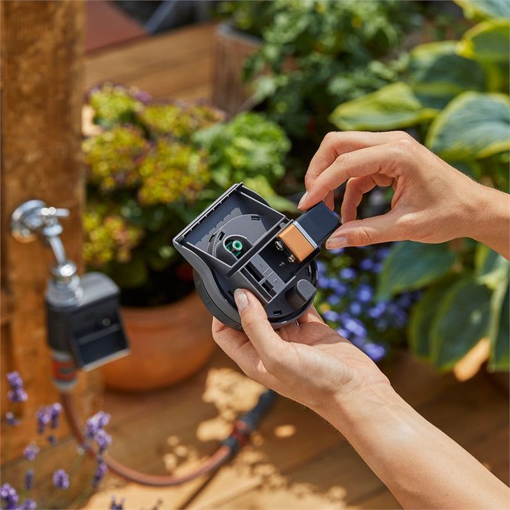Thanks to its extra-short watering cycles, the Flex Water Computer is the perfect match for drip-irrigation systems and the little-but-often watering needs of pot plants. The integrated battery level display indicates 4 battery levels: up to 1 year, min. 4 weeks, max. 4 weeks and too weak to use. The Safe Water Stop function verifies that there is enough battery power to complete the upcoming watering cycle. If not, the cycle is not commenced.