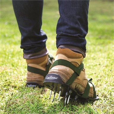 The Cyclone Lawn Aeration Sandals are ideal for aerating the lawn. Aeration is vital to any lawn as it allows air, water & nutrients to reach deep into the soil resulting in deeper roots and a healthier lawn. This product features rust resistant metal buckles with heavy duty nylon straps. The heel strap provides additional support to ensure your foot remains secure when in use.