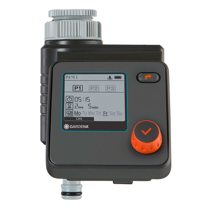 GARDENA Select Water Computer connects to the tap and manages up to three irrigation programs automatically. Programming is uncomplicated thanks to the step-by-step menu, simple controls and easy-to-read energy saving LCD display. Up to 3 individual programs can be set to start and stop independently offering that much-needed flexibility when catering to the specific needs of your gardens and lawns.