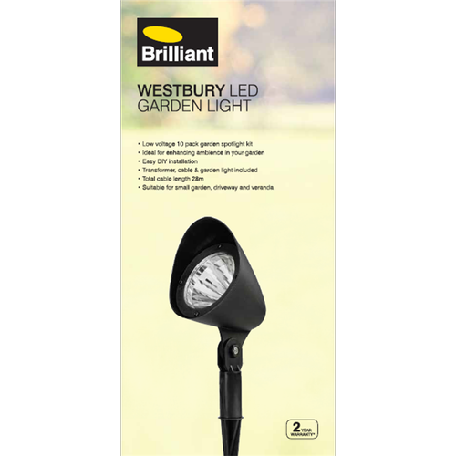 The Westbury LED DIY Garden Light Kit includes Transformer, Cable and 10 Garden light on spike, simply plug in and light up. Suitable for garden, driveway and veranda, ideal for enhancing ambience in your garden.