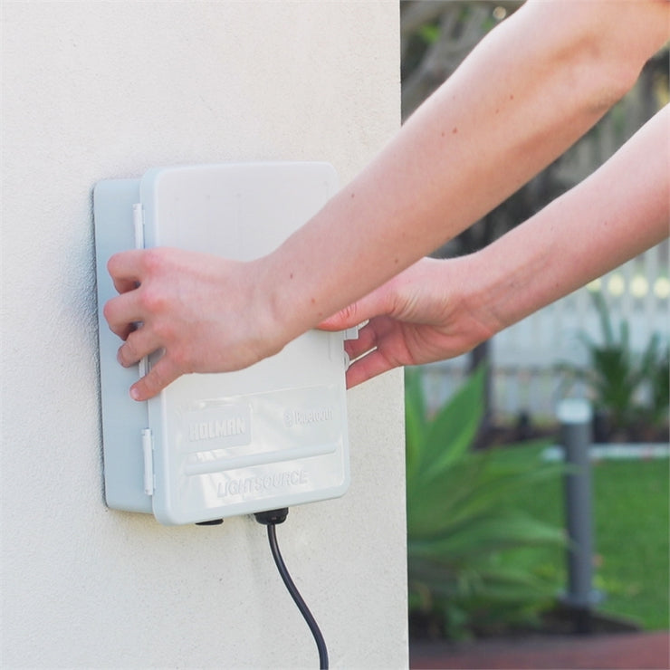 This garden light controller is also available as a Bluetooth enabled model. All Holman LIGHTSOURCE controllers can handle 60W of attached garden lights.