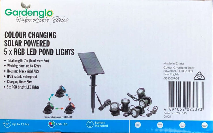 - Model Name: Colour Changing Solar 5 x RGB LED Pond Light