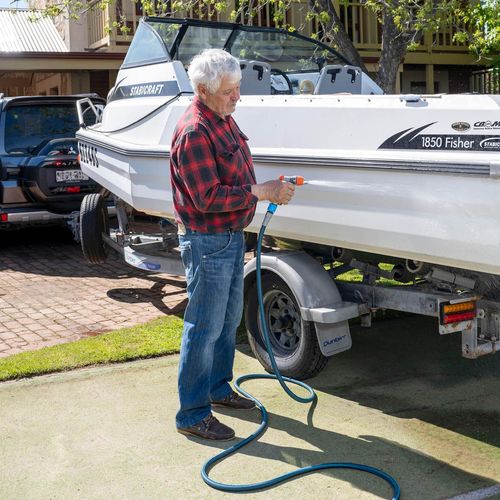 The non-abrasive outer layer and very high kink resistance makes this an ideal hose for washing down boats and caravans. Simply attach the hose to tap and once under pressure it expands twice the original length!