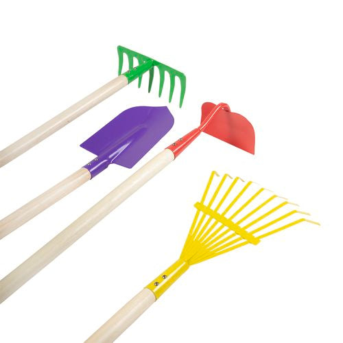 - Includes a Shovel, Soil Rake, Hoe & Leaf Rake