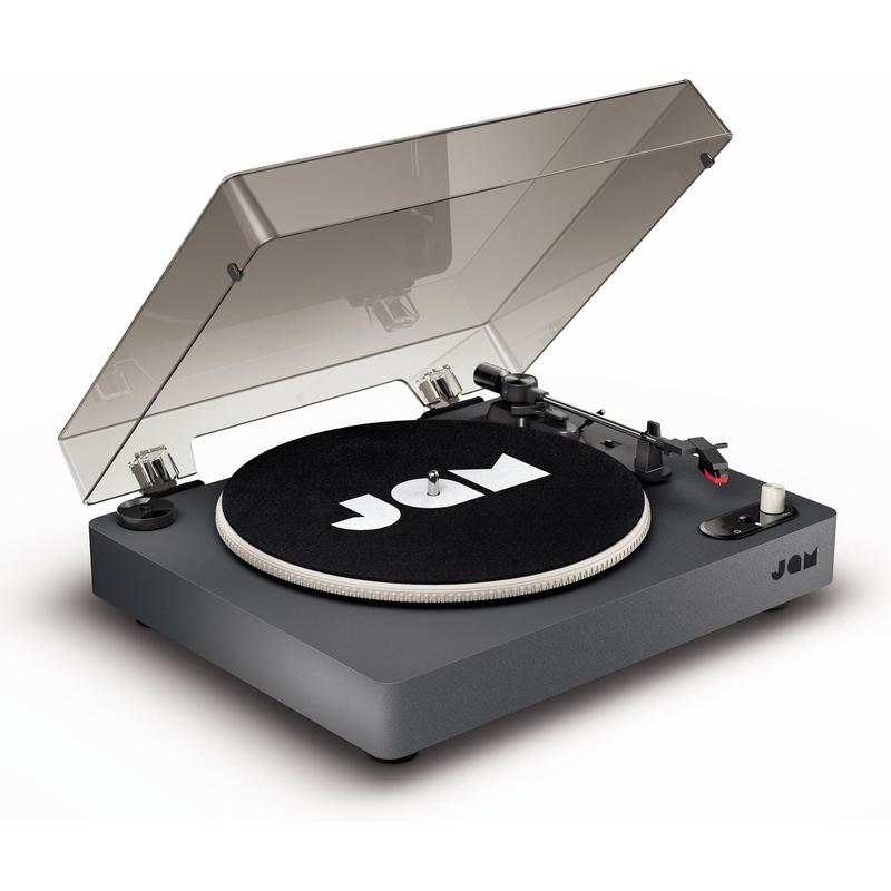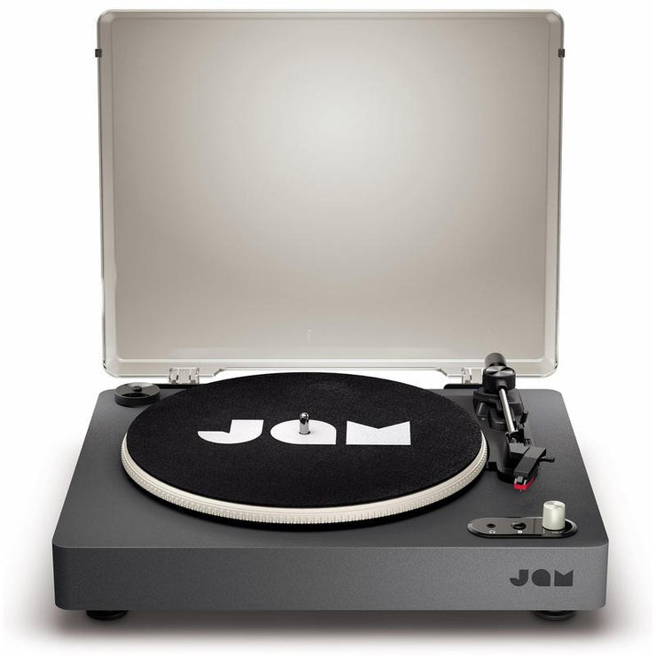 • Protective Cover Stepping back into the vinyl market does not ask you to compromise! Never worry about your platter or stylus getting dusty again. The Jam Play Turntable comes with a built-in dust coverfor a complete Jam-packed package!
