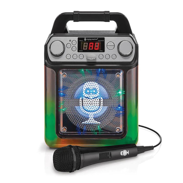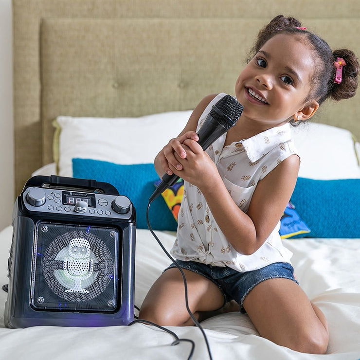 Our Groove Cube Mini is a fun-filled, portable singing system that goes way beyond karaoke. It was designed to be a multi-use entertainment system for kids of all ages. A serious karaoke machine, powerful enough to fill a medium-sized room but slim and light-weight for kids to take on-the-go wherever their musical adventures take them.