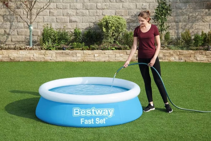 - Select a level surface, inflate top ring and the pool will rise as it's filled with water
