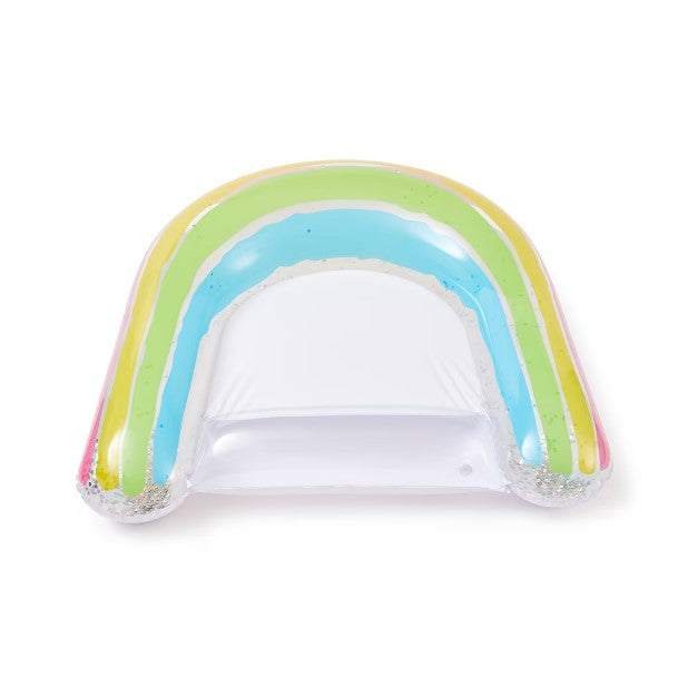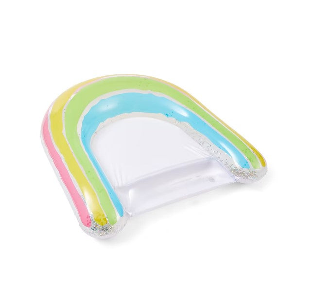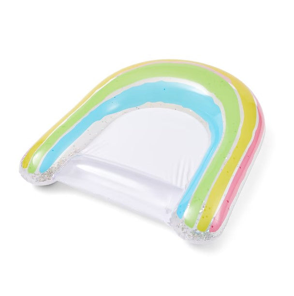 Kids will have a relaxing time in the pool while lounging on this inflatable rainbow sling.