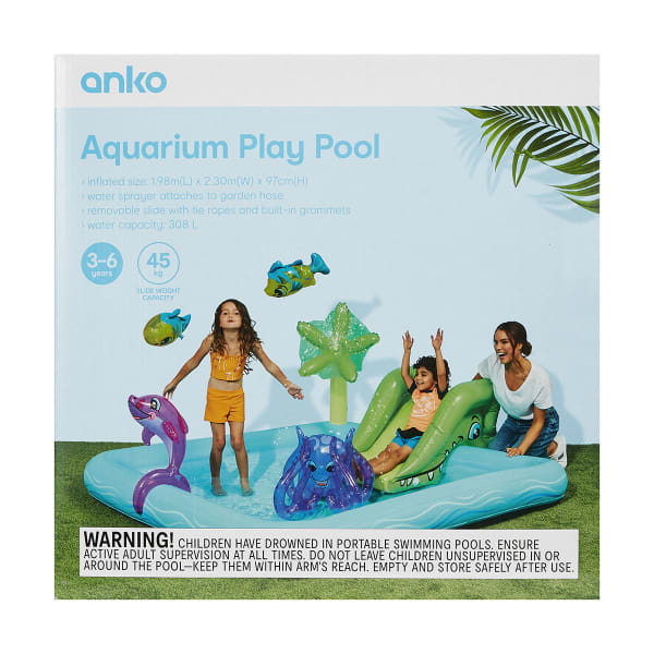 Add a splash of aquatic-themed fun to your little one's backyard pool time with this inflatable aquarium play pool.