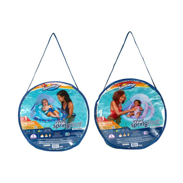 - Infant spring float: Made for infants 3-9 months old and comes with all the same great features of the original Infant Spring Float with the addition of new Hyper-Flate technology