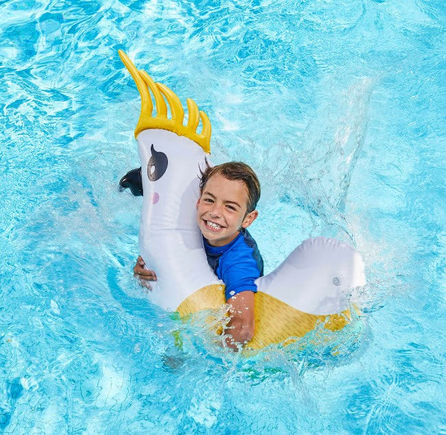 Kids can indulge in hours of fun in the pool with this inflatable cockatoo pool rider.