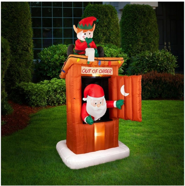 Give a cheeky festive greeting to friends and family with Lytworx  Inflatable Christmas Outhouse. Set up is simple, plug in the included low-voltage transformer and stand back as the Outhouse self-inflates. Watch along as the mechanised outhouse door swings open, Santa waves a jolly hello whilst a cheeky EFL hides the loo roll! Made from high-quality and long-lasting material, this inflatable is suitable for indoor and outdoor spaces, and perfect for decorating festive displays, Christmas parties, garden decor, and more. This inflatable features 15 in-built LED lights that will remain bright yet cool to touch even after extensive use.