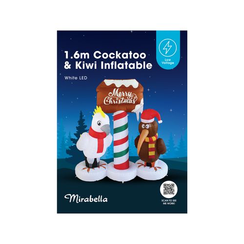 Decorate your home this festive season with a 1.6 metre Cockatoo and Kiwi LED Inflatable. This is a fun and entertaining decoration that's sure to attract guests, both kids and adults! This product is easy to set-up, self-inflates within minutes, and is great for both indoor and outdoor use.