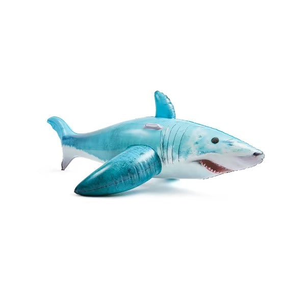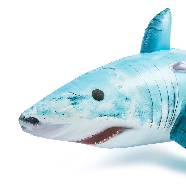 Kids will love to float in style with this inflatable shark rider that features heavy duty handles for a strong grip.