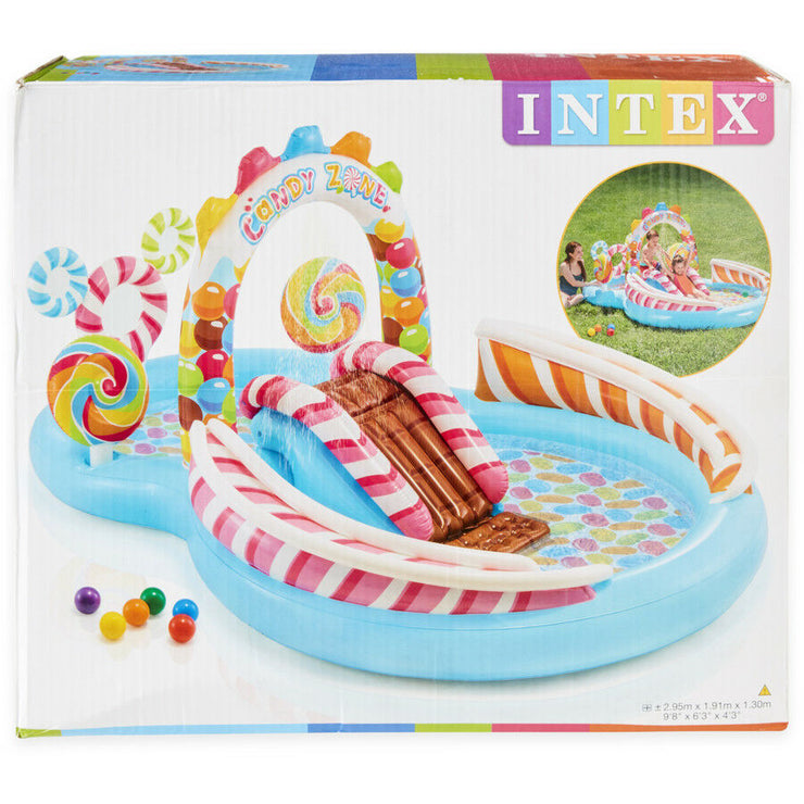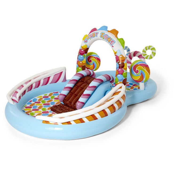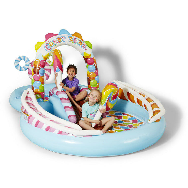 Get ready for summertime fun in the sun with the Intex Candy Play Pool. This play pool comes in a vibrant and fun candy design and features an inbuilt slide and candy zone arch. Sized 2.95m x 1.90m x 1.30m.