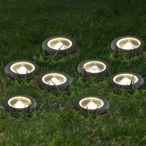 The Click 10 Lumens Bailey Solar LED Disc Light comes with a set of 8 lights. The product is designed to fit nicely to your pathway, walkway, or driveway. The product is also built with the stainless steel housing that is durable and weatherproof.