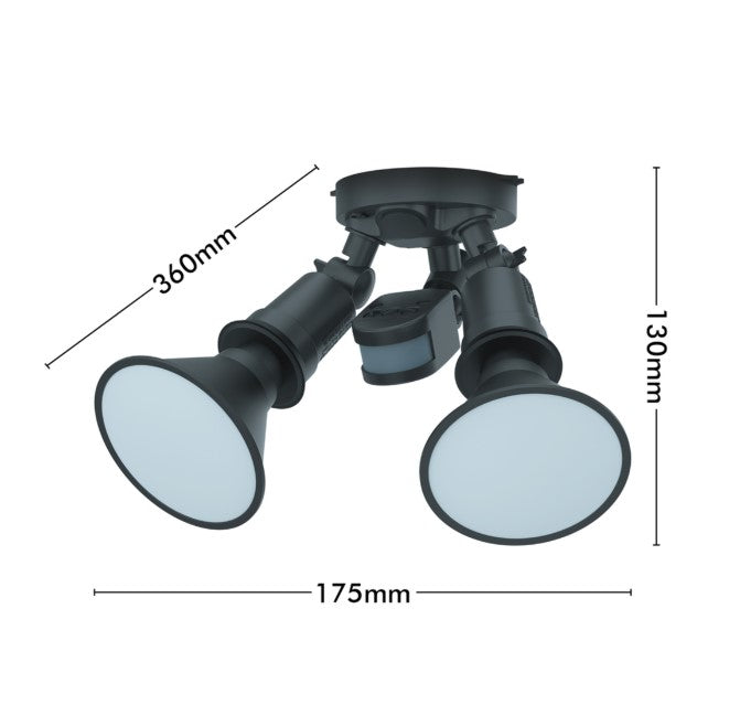 Arlec 30W DIY Twin LED PAR38 Security Flood Light With PIR Motion Sensor