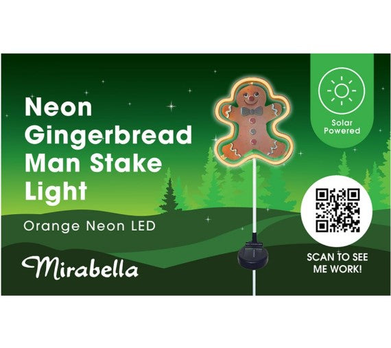 Decorate your home this festive season with a 76cm Neon Gingerbread Man LED Stake Light Decoration. This is a great central feature to any outdoor display. This product is easy to set-up, solar powered and energy efficient. Outdoor use only.