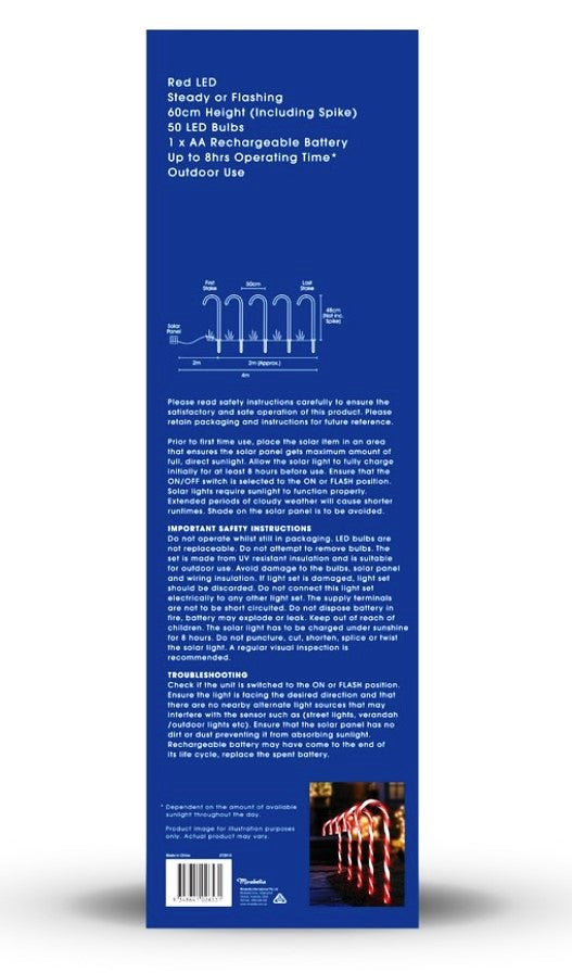 - Model Name: Solar Powered LED Candy Cane Stakes - Set of 5