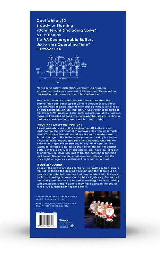 - Model Name: Solar Powered LED Santa & Reindeer Stake Lights - Set of 5