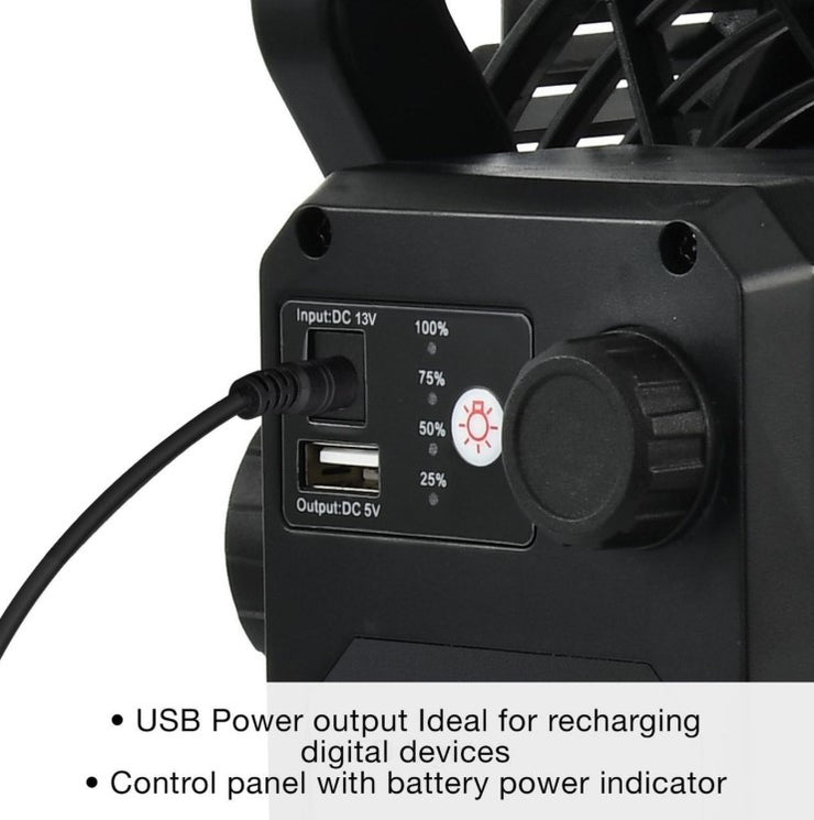 Arlec 25cm Viktor LED Rechargeable Fan - Black/Adjustable Tilt Head