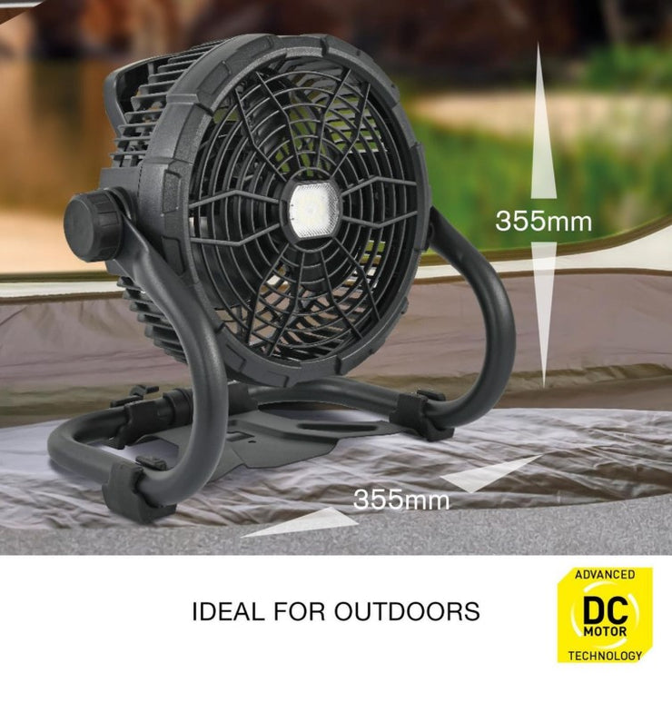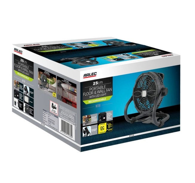 The Arlec 25cm Rechargeable DC Floor Fan enables you to be ready for summer camping and outdoor activities. This fan features unique technology so that the unit can run up to 17 hrs after being fully charged. It comes with LED light bulid in the central of fan grille.