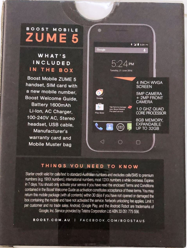 Boost Mobile ZUME 5 Smart Phone Locked to Boost & Telstra - Black features: