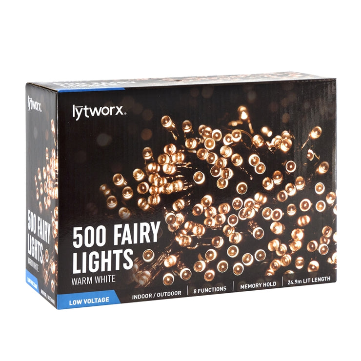 The Lytworx 500 Warm White / White LED Party Light pack is ideal for decorating the inside or outside of your home for functions and parties. Featuring 500 warm white / White LEDs and a built-in function controller which allows you to choose between 8 steady and flashing effects. For added convenience, this item includes a 'memory hold' feature which automatically remembers your last flash setting even when the power is turned off.