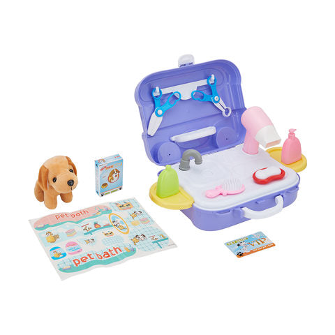 Great for pretend play, your little pet lover will have hours of fun with this dog grooming playset!