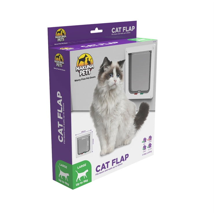 Never worry about leaving your pet at home again, give your pet the freedom to come and go as they please and get the exercise they need with the Hakuna Pets Large Cat Flap.