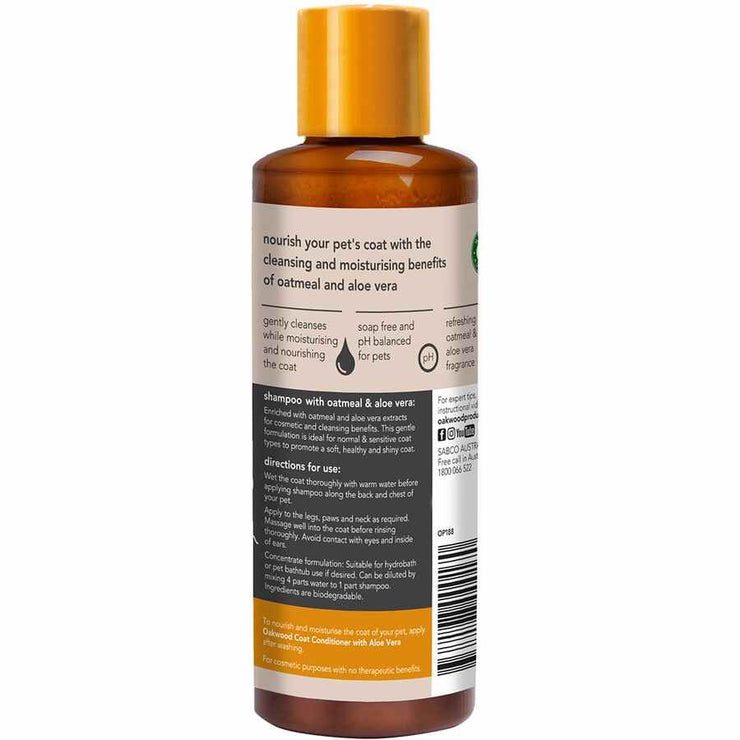 Oakwood Pet Shampoo with Oatmeal & Aloe Vera is a gentle, soap free shampoo that moisturises coat to promote a healthy clean wash. Formulated to pH balanced levels to improve coat healthiness, long-term performance and shine. Also provides a long-lasting Oatmeal & Aloe Vera after fragrance to your pet’s coat.