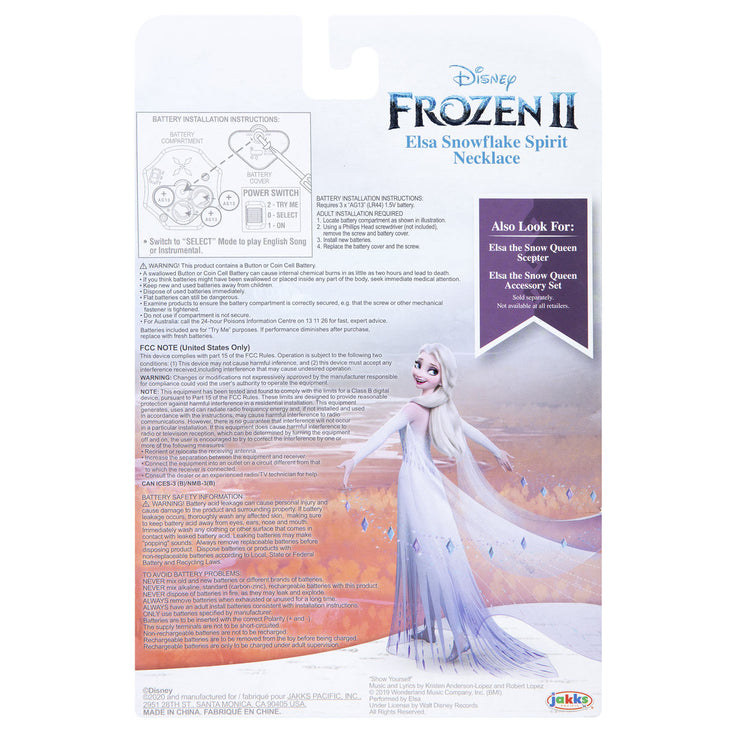 Bring home the magic of Frozen II to your little one with this Magical Elsa necklace that lights up and plays sounds and music from the Frozen II movie.