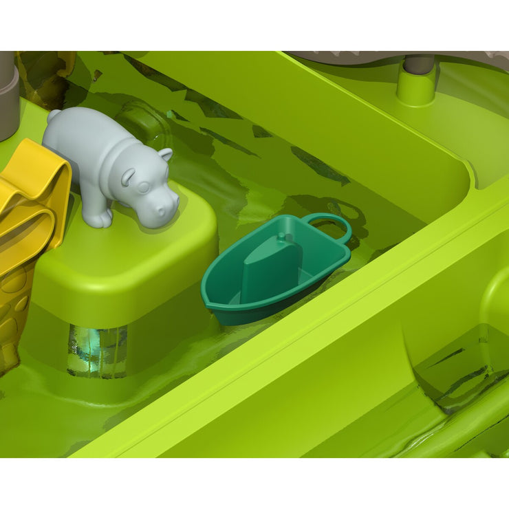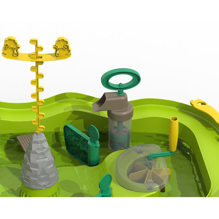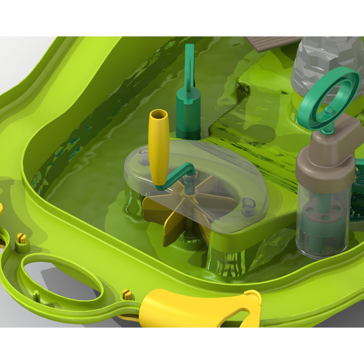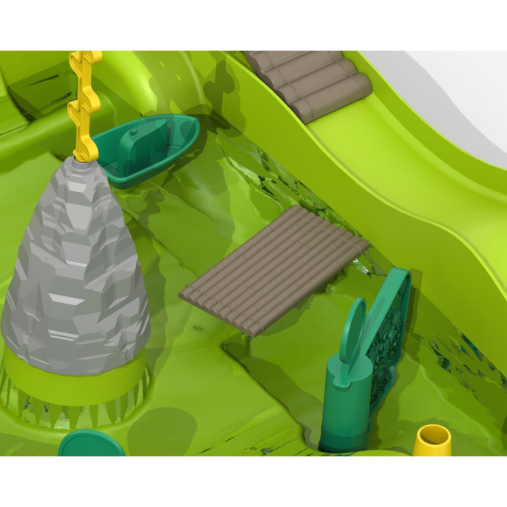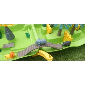 - The kit includes: Water Pump Animals Raft Dam Bridge Boat Monkey Swing Wave Maker