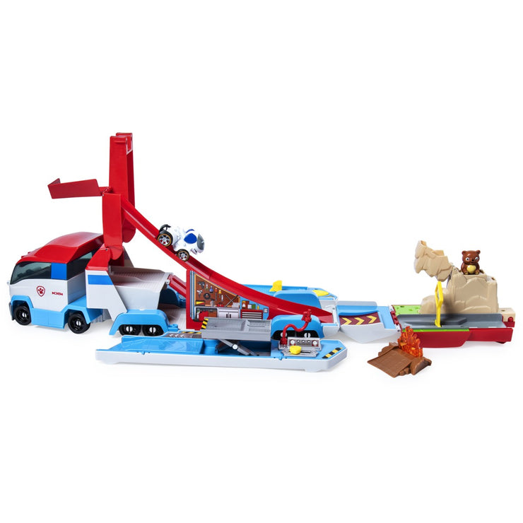 - 2-IN-1 TRANSFORMING VEHICLE: Transform from fan favorite PAW Patroller team vehicle into an action-packed track set! Kids can open up the Launch’N Haul to discover 3 rescue missions to complete and an exclusive Robodog 1:55 scale metal die-cast vehicle.