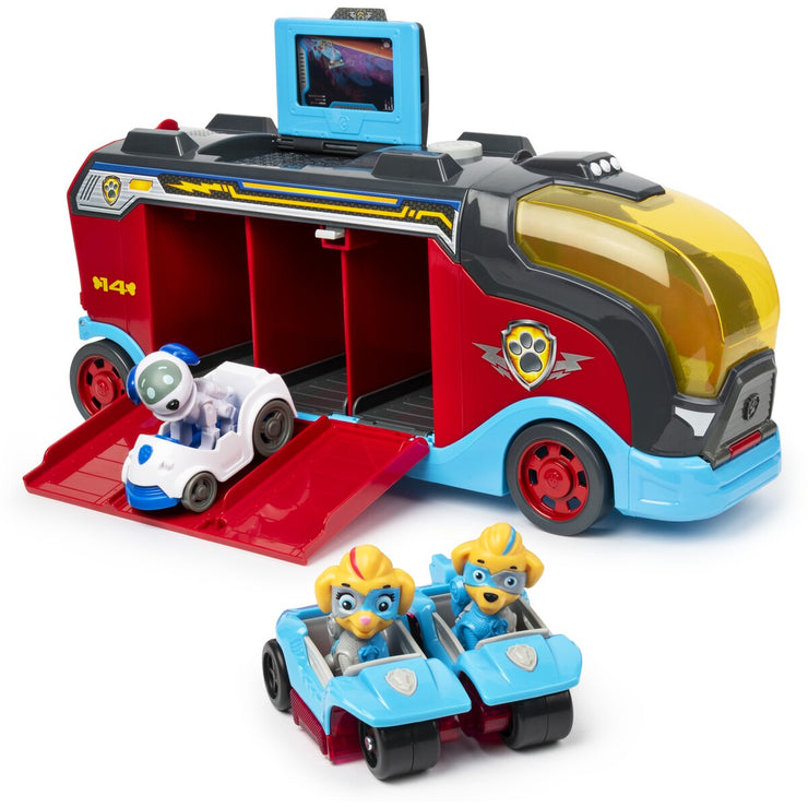 - The Paw Patrol Mighty Cruiser includes exclusive Mighty Twins figures and their superhero vehicles and an exclusive Robodog and vehicle! Load all 3 vehicles into the side of the Mighty Cruiser for action-packed missions!