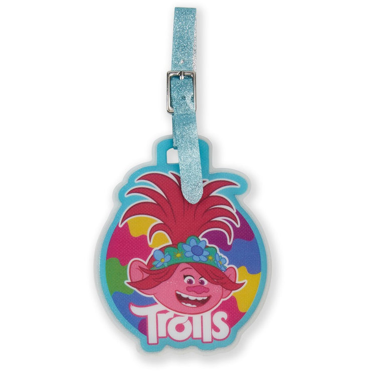 Travel in style with the Trolls Luggage Bag Tag. Featuring sparkling glitter details, a secure buckle, and fun Trolls design, it is perfect for attaching to your school bag or luggage when travelling on holidays!
